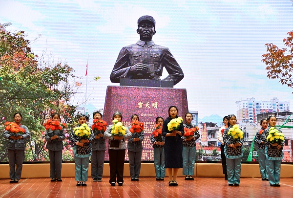 《房陵壯歌》是學(xué)校根據(jù)鄂西北抗日救亡運(yùn)動(dòng)和解放鄂西北的重要領(lǐng)導(dǎo)者之一雷天明的事跡進(jìn)行編排的。劇中再現(xiàn)抗日戰(zhàn)爭(zhēng)全面爆發(fā)后,雷天明以國(guó)家大事為重,放棄學(xué)業(yè)回到房縣,組織宣傳喚醒民眾的場(chǎng)景。他在當(dāng)時(shí)的西關(guān)小學(xué)以教書為掩護(hù),爭(zhēng)取一切機(jī)會(huì)利用一切形式,成立抗日救亡宣傳隊(duì)、歌詠隊(duì)同反動(dòng)派作斗爭(zhēng),在抗戰(zhàn)全面爆發(fā)后主動(dòng)請(qǐng)戰(zhàn)到條件艱苦的鄂西北深山帶領(lǐng)部隊(duì)作戰(zhàn),后被叛徒出賣被解壓到保康監(jiān)獄,最終被殺害的故事。