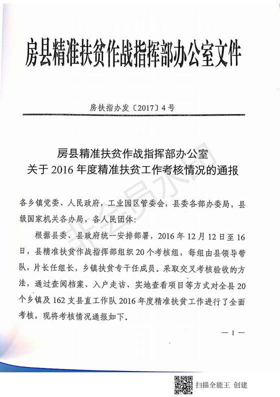 房縣精準扶貧作戰指揮部辦公室關于2016年精準扶貧工作考核情況的通報-今日房縣網-- 房縣門戶