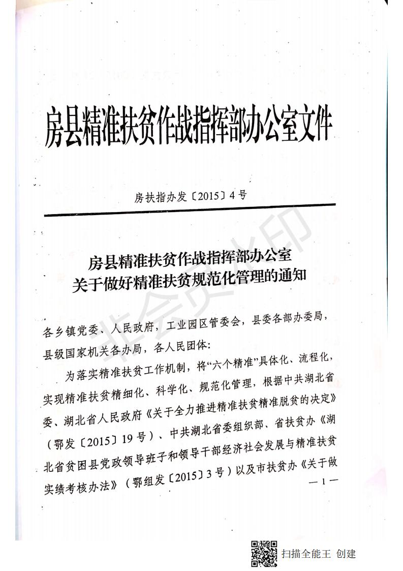 房縣精準扶貧作戰指揮部辦公室關于做好精準扶貧規范化管理的通知