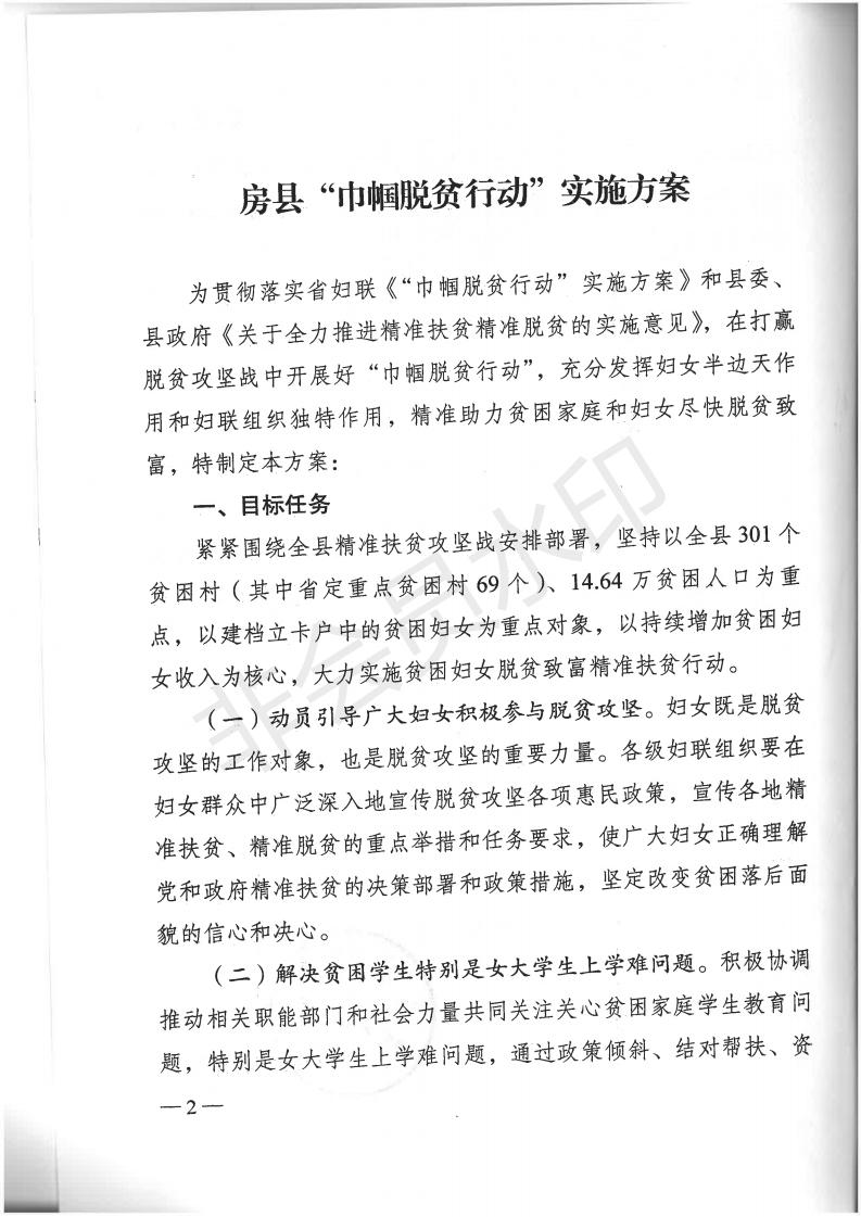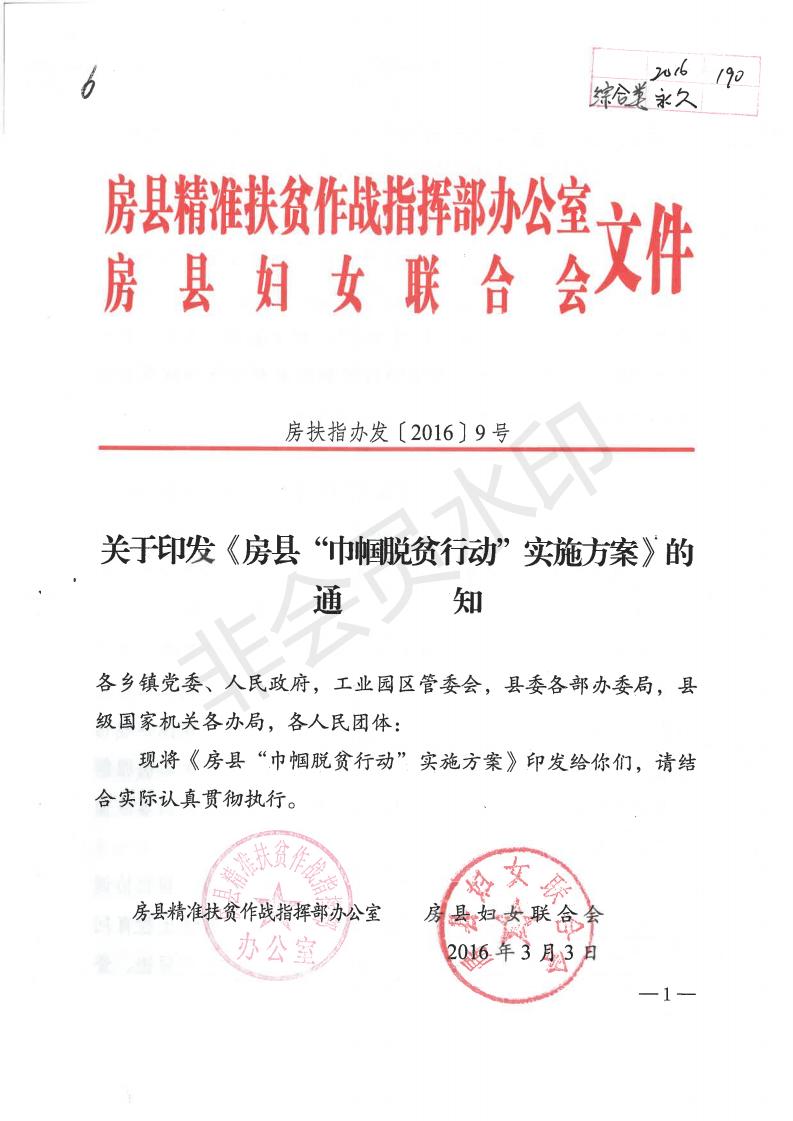 關于印發《房縣“巾幗脫貧行動”實施方案》的通知