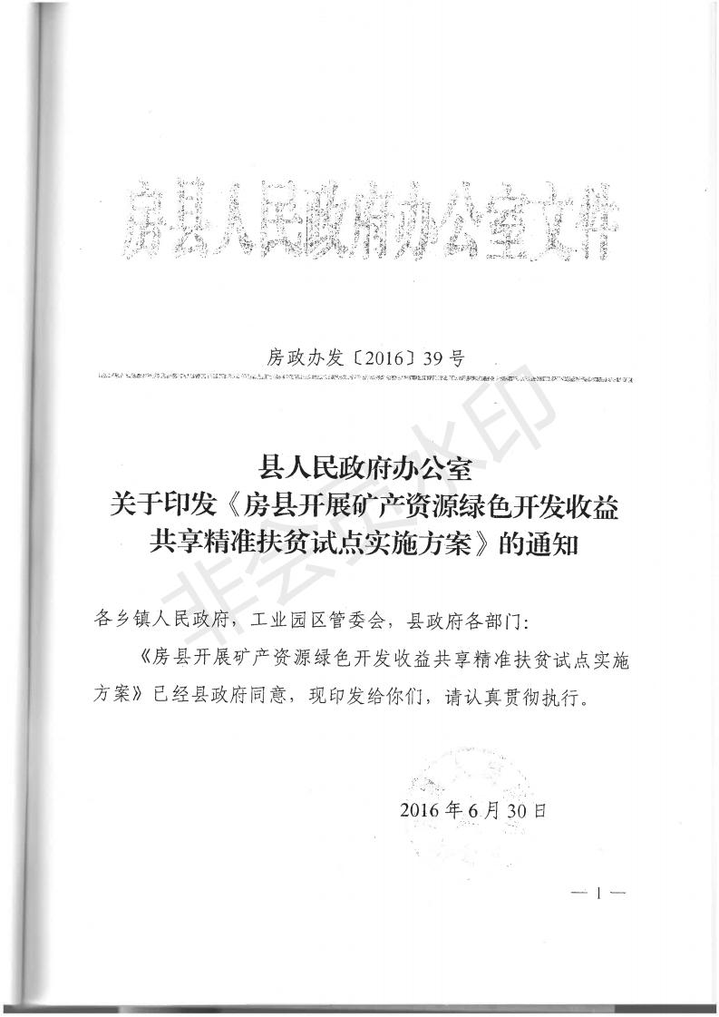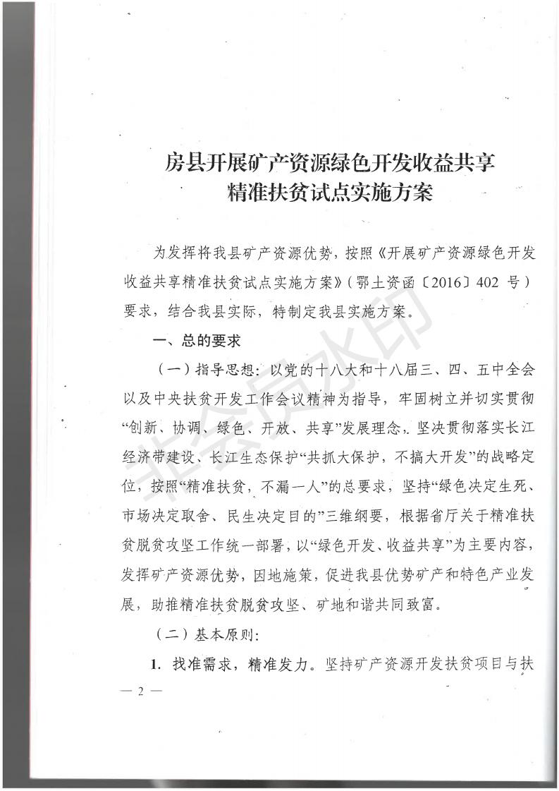 縣人民政府辦公室關于印發《房縣開展礦產資源綠色開發收益共享精準扶貧試點實施方案》的通知