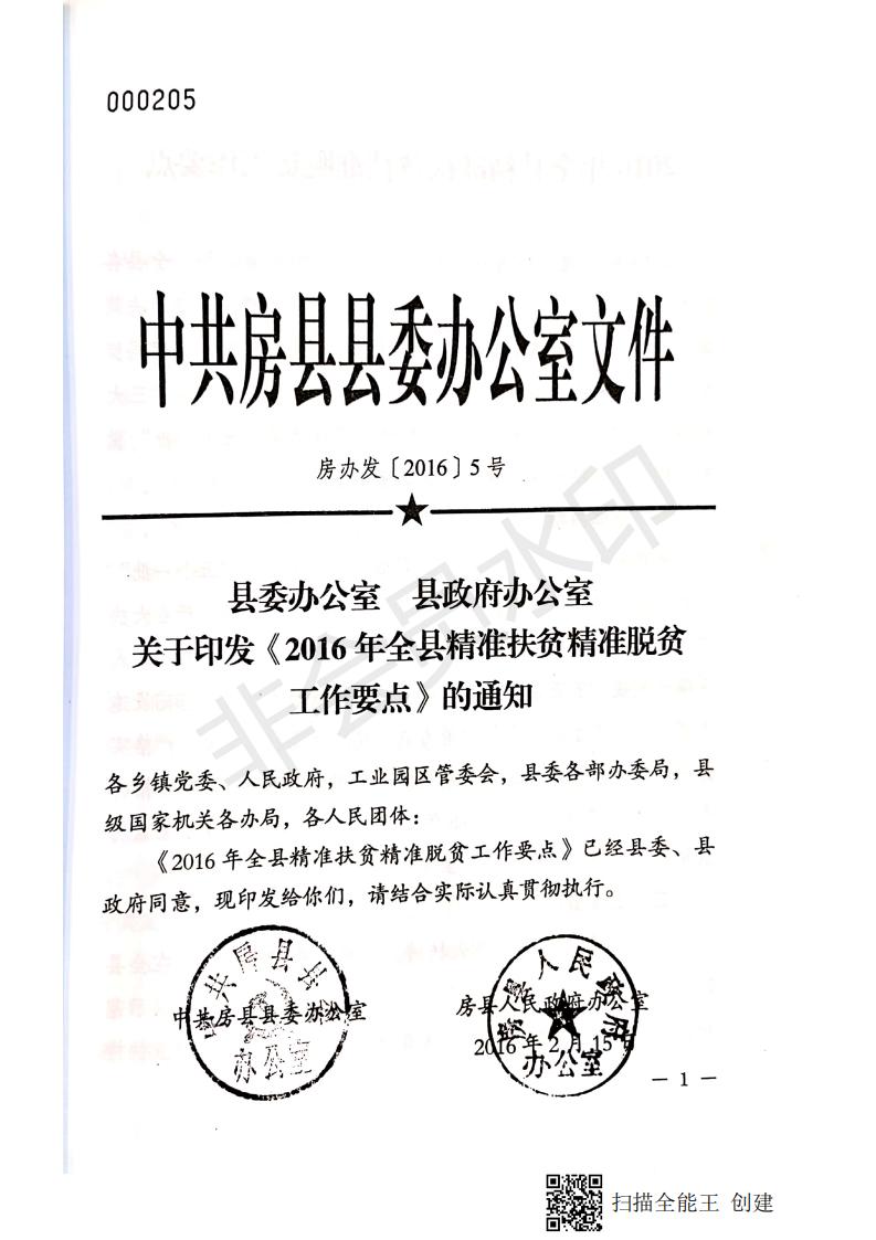 縣委辦公室 縣政府辦公室關于印發《2016年全縣精準扶貧精準脫貧工作要點》的通知-今日房縣網-- 房縣門戶
