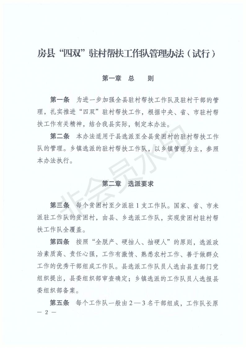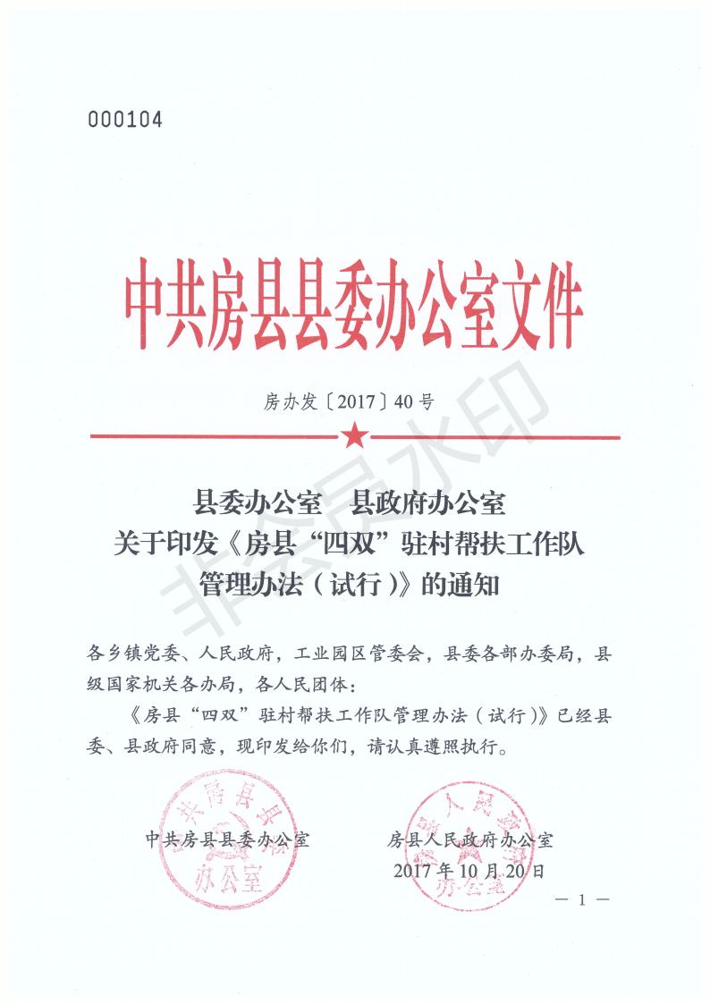 縣委辦公室 縣政府辦公室關于印發《房縣“四雙”駐村幫扶工作隊管理辦法(試行)》的通知