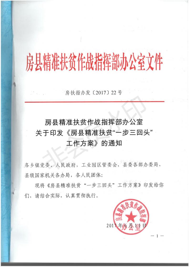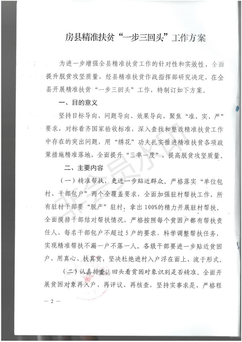 房縣精準扶貧作戰指揮部辦公室關于印發《房縣精準扶貧“一步三回頭”工作方案》的通知