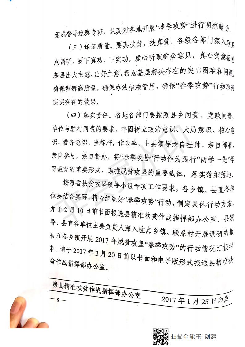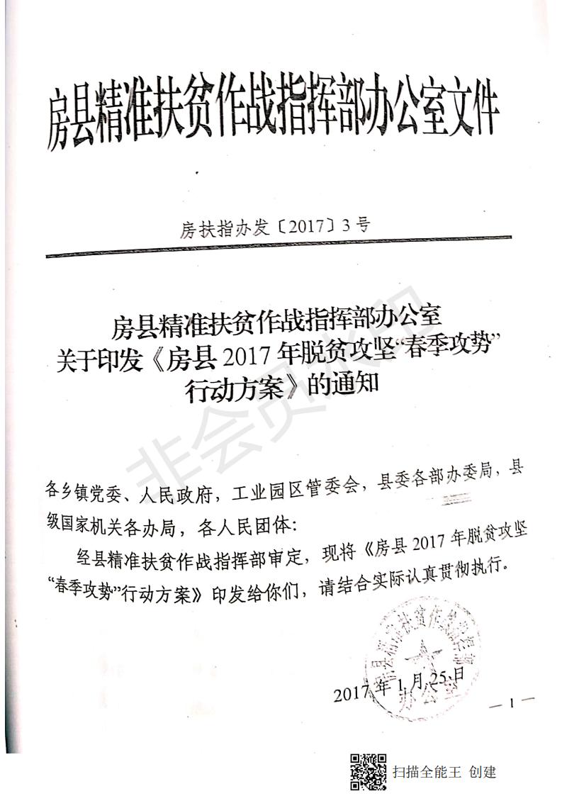 房縣精準扶貧作戰指揮部辦公室關于印發《房縣2017年脫貧攻堅“春季攻勢”行動方案》的通知-今日房縣網-- 房縣門戶