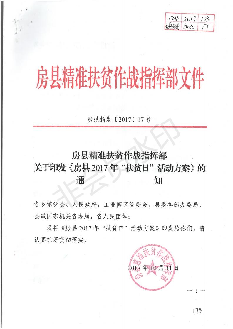 房縣精準扶貧作戰指揮部關于印發《房縣2017年“扶貧日”活動方案》的通知