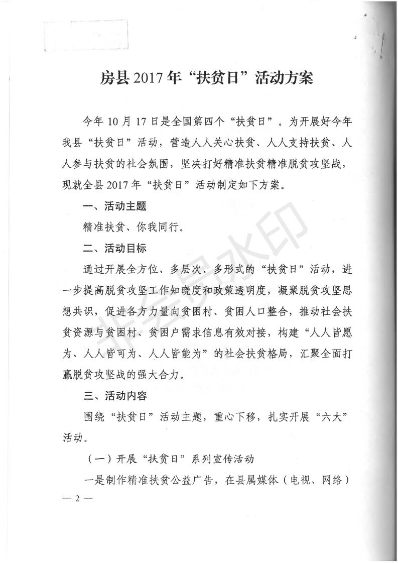 房縣精準扶貧作戰指揮部關于印發《房縣2017年“扶貧日”活動方案》的通知-今日房縣網-- 房縣門戶