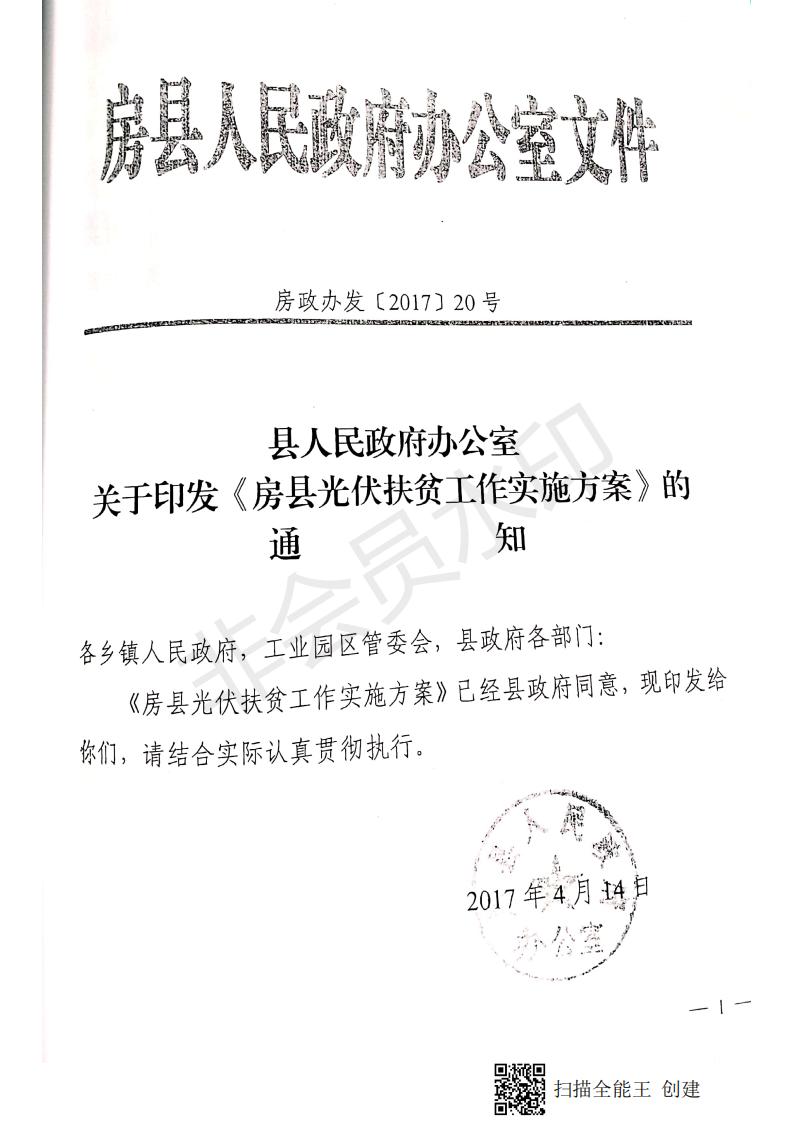 縣人民政府辦公室關于印發《房縣光伏扶貧工作實施方案》的通知