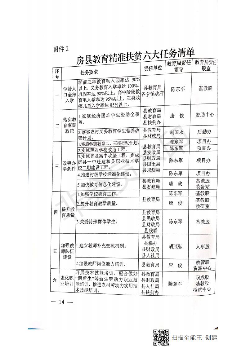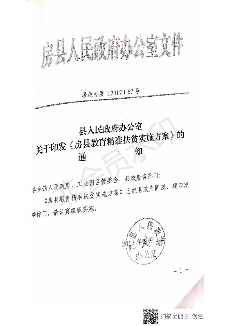 縣人民政府辦公室關于印發《房縣教育精準扶貧實施方案》的通知