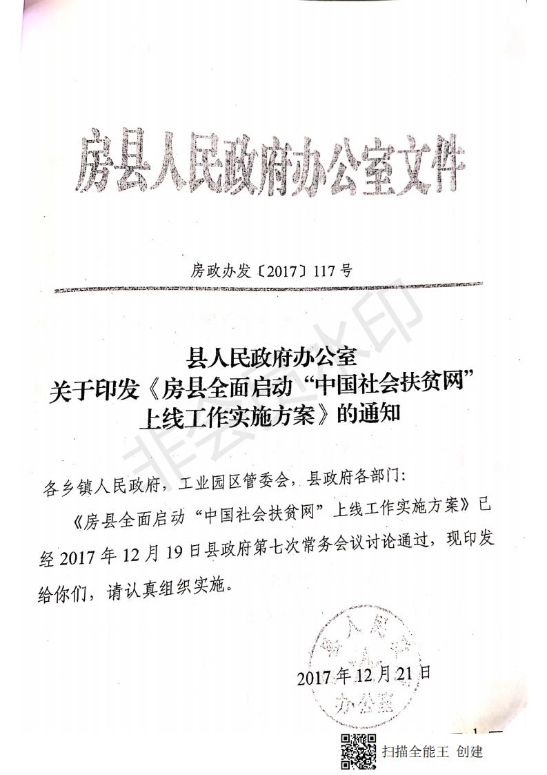 縣人民政府辦公室關于印發《房縣全面啟動“中國社會扶貧網”上線工作實施方案》的通知