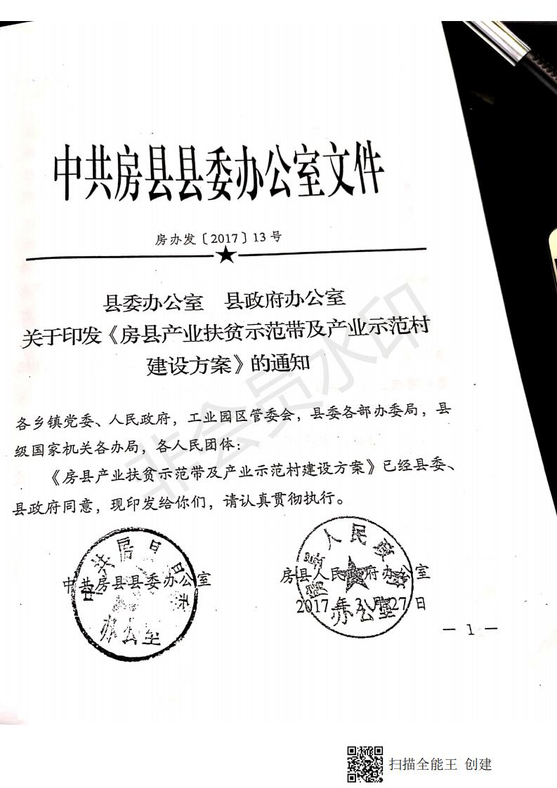 縣委辦公室 縣政府辦公室關于印發《房縣產業扶貧示范帶及產業示范村建設方案》的通知