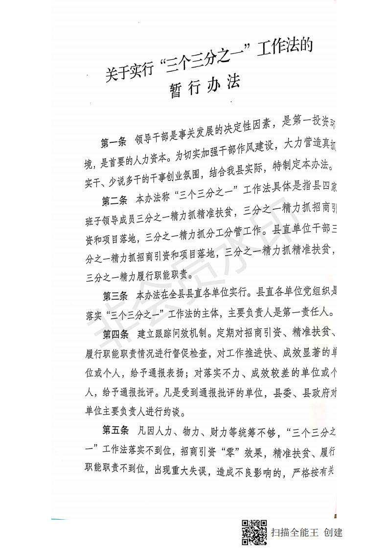 縣委辦公室縣政府辦公室印發《關于實行“三個三分之一”工作法暫行辦法》的通知