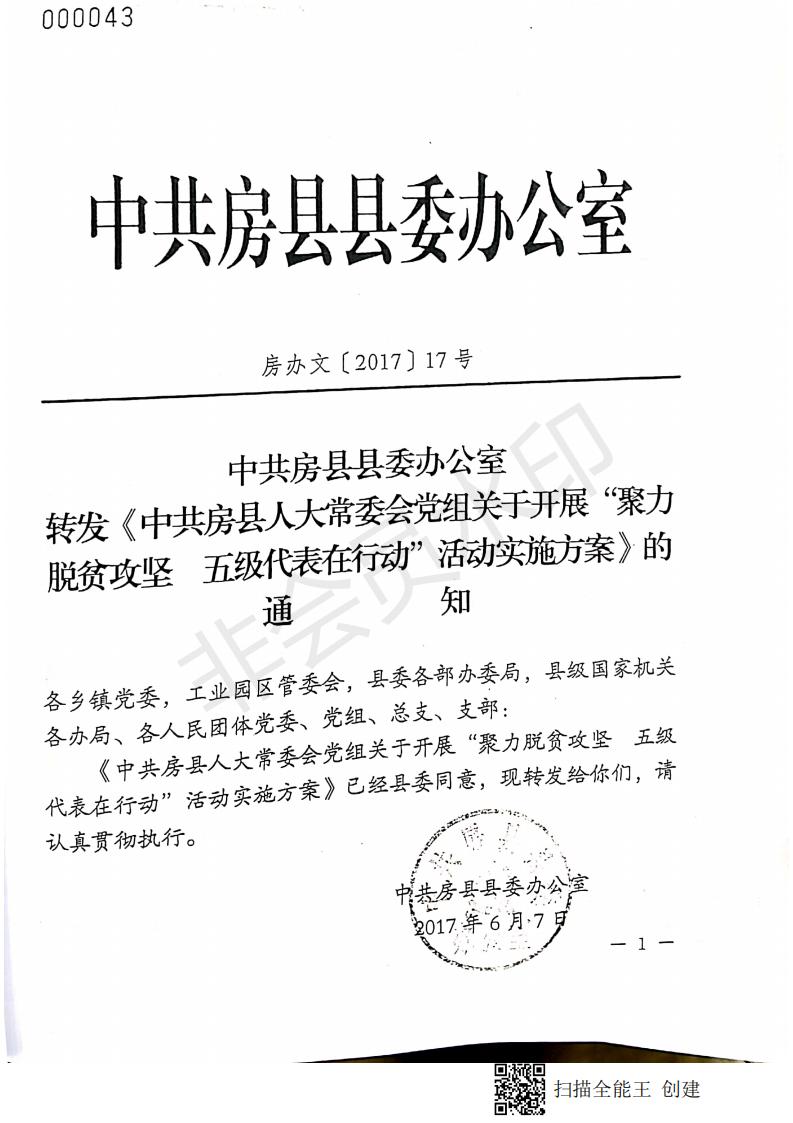 中共房縣縣委辦公室轉發《中共房縣人大常委會黨組關于開展“聚力脫貧攻堅 五級代表在行動”活動實施方案》的通知