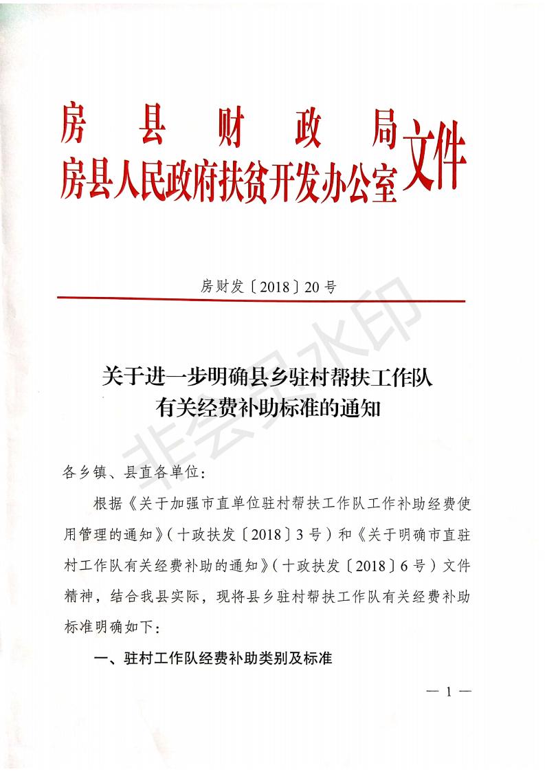 關于進一步明確縣鄉駐村幫扶工作隊有關經費補助標準的通知-今日房縣網-- 房縣門戶