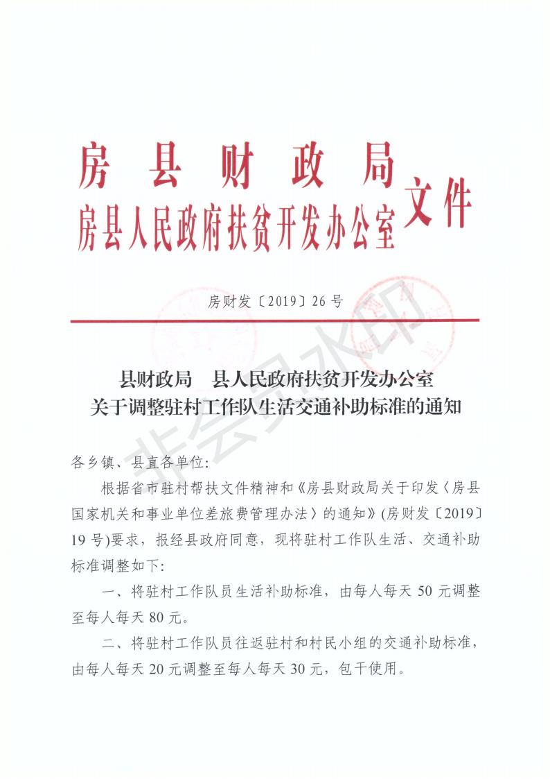 縣財政局 縣人民政府扶貧開發辦公室關于調整駐村工作隊生活交通補助標準的通知-今日房縣網-- 房縣門戶