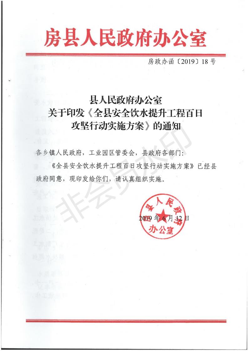 縣人民政府辦公室關于印發《全縣安全飲水提升工程百日攻堅行動實施方案》的通知-今日房縣網-- 房縣門戶