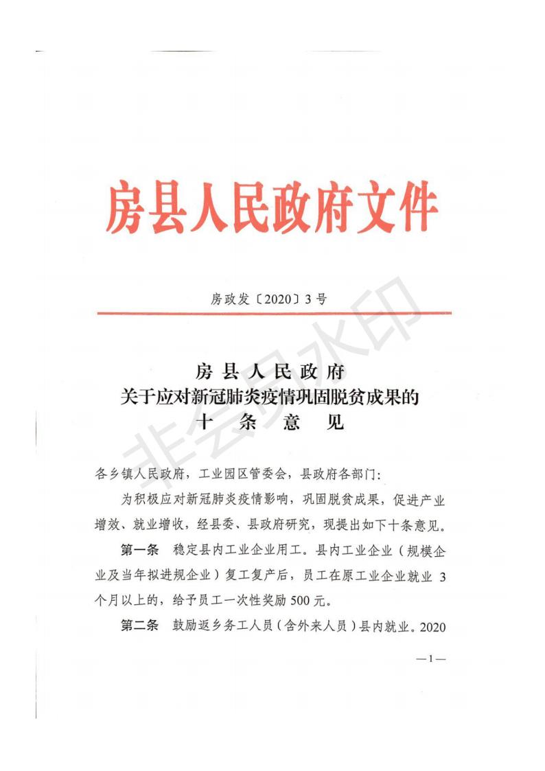 房縣人民政府關于應對新冠肺炎疫情鞏固脫貧成果的十條意見