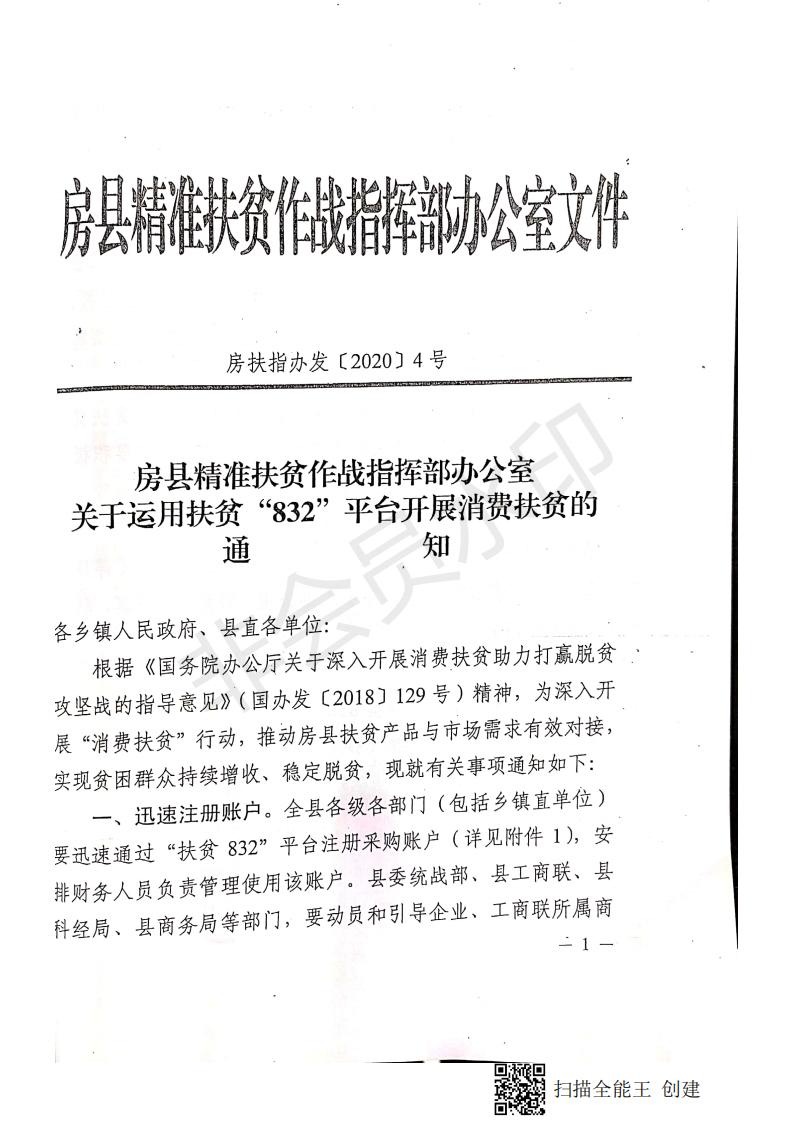 房縣精準扶貧作戰指揮部辦公室關于運用扶貧“832”平臺開展消費扶貧的通知