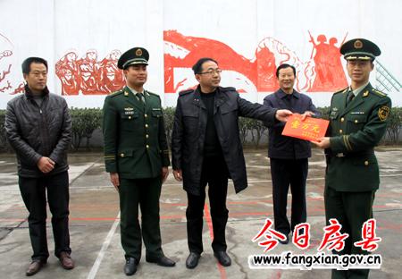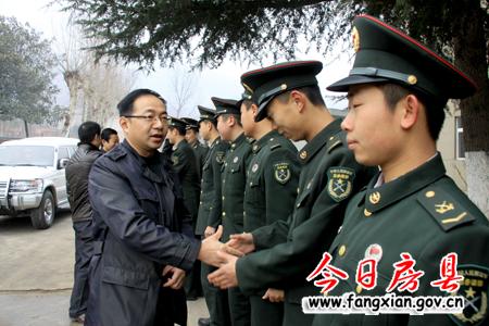 今日房縣網(wǎng)訊 記者 吳宏強 報道: 在新春佳節(jié)即將到來之際,縣長朱光洪15日上午親切看望慰問了駐房武警官兵、公安干警,代表縣委、縣政府向他們致以節(jié)日的問候和良好的祝愿。縣領導姚天國、杜啟學、王敬東、張延貴陪同慰問。