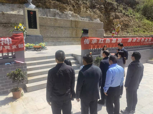 在活動中,全體黨員干部佩戴黨徽、整齊列隊,重溫入黨誓詞,并向喬三元烈士敬獻花籃、致敬默哀。現場烈士后人喬玉泉解說了烈士喬三元生前參加革命,為國捐軀的光榮事跡。
