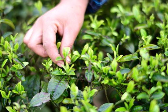 “我家有3畝地流轉出來種茶,茶園就在我家附近,孩子上學了在家也沒事,來采一天茶還能掙100多塊錢呢,每天光采茶的大概就有20多人,我又在基地做管護,一年有3萬元左右的工資”,茶農劉慧是一位家庭主婦,她開心的說到,現在對于茶葉基地的這份工作非常滿意。
