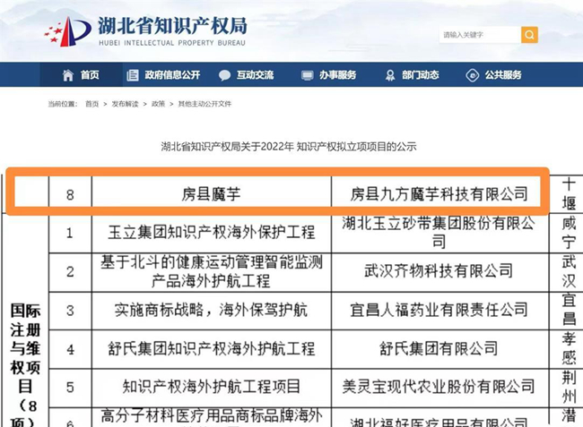 今日房縣網(wǎng)訊? 通訊員? 金勇? 報(bào)道:近日,湖北省知識(shí)產(chǎn)權(quán)局發(fā)布通知,房縣湖北武當(dāng)動(dòng)物藥業(yè)有限責(zé)任公司申報(bào)的“防治仔豬白痢的生物獸藥”和房縣九方魔芋科技有限公司申報(bào)的“房縣魔芋”分別獲準(zhǔn)2022湖北省知識(shí)產(chǎn)權(quán)運(yùn)用示范工程和2022湖北省荊楚品牌培育工程項(xiàng)目立項(xiàng)。
