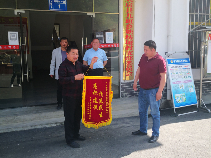 今日房縣網(wǎng)訊 通訊員陳建軍 報(bào)道: 近日,為感謝房縣高標(biāo)準(zhǔn)農(nóng)田建設(shè)項(xiàng)目為當(dāng)?shù)卮迕褶k實(shí)事,九道鄉(xiāng)塘坊埡村黨支部書記賈先華與當(dāng)?shù)卮迕褚煌蚋邩?biāo)準(zhǔn)農(nóng)田建設(shè)辦公室送上錦旗。