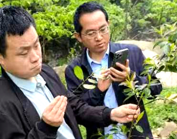 今日房縣網(wǎng)訊 記者 孫國 報(bào)道:4月25日,華中農(nóng)業(yè)大學(xué)園藝林學(xué)學(xué)院茶學(xué)系教授黃友誼在湖北詩源茶旅文化有限公司負(fù)責(zé)人孫明的陪同下,深入我縣萬峪鄉(xiāng)栗子坪村龔家河實(shí)地考察并現(xiàn)場認(rèn)定該村存有大片野生騫林茶樹,這是繼丹江口市鹽池河武當(dāng)口、黃草坡等村發(fā)現(xiàn)的大片野生騫林茶樹之后的又一新發(fā)現(xiàn)。