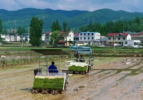 今日房縣網訊 通訊員 謝鴿 報道:近日氣溫回升,房縣迎來水稻插秧的黃金時節。在軍店鎮下茅坪村千畝良田里,數十臺插秧機在水田里來回穿梭,插秧機所過之處,一株株秧苗整整齊齊地***入稻田。另一邊,好幾臺拖拉機帶著旋耕機正在整著地,場面蔚為壯觀。