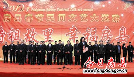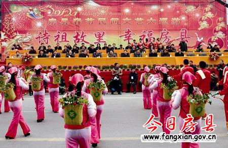 上午9時整,縣委書記沈明云宣布:“詩祖故里·幸福房縣”2012春節(jié)民間文藝大巡游活動開始!