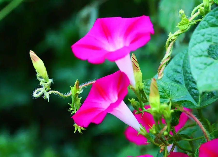 沿墻邊一路前行,朵朵喇叭花迎著陽光肆無忌憚地綻放,或從院墻伸出頭來,或掛在枝頭,格外嬌艷。