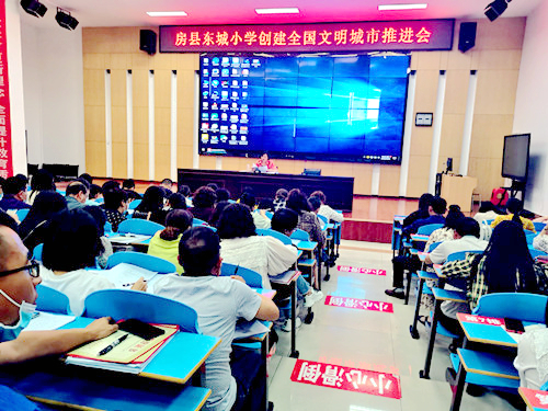 今日房縣網訊 通訊員李英 冀曼 報道: 5月23日,房縣東城小學組織召開創建全國文明城市推進會,對該校創文工作進行再動員、再部署,對落實責任、加快整改提出要求。