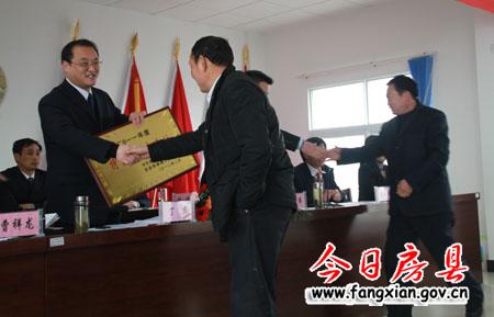 圖為黨委書記丁杰為特色產(chǎn)業(yè)專業(yè)村頒獎