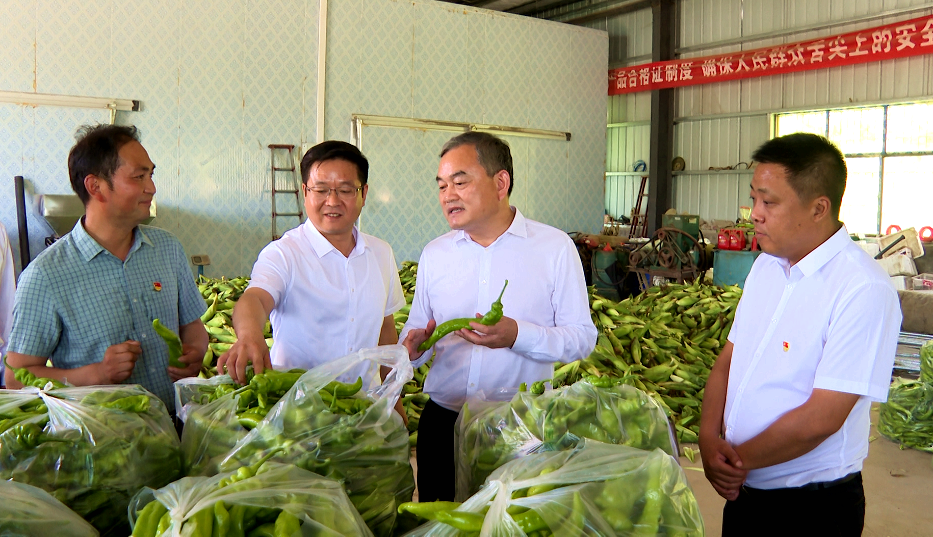 在上灣村蔬菜基地,趙哲慰問正在車間忙碌的黨員致富帶頭人雷臣俊,雷臣俊成立的駿豐農(nóng)業(yè)科技有限公司在化龍堰鎮(zhèn)上營村、上灣村建設(shè)蔬菜基地650余畝,帶動(dòng)150余戶群眾穩(wěn)定增收。趙哲察看蔬菜的長勢,詢問產(chǎn)量和銷路,鼓勵(lì)他要加強(qiáng)技術(shù)支撐,提升蔬菜產(chǎn)量,做好蔬菜市場對(duì)接,穩(wěn)步發(fā)展蔬菜產(chǎn)業(yè),帶動(dòng)更多地群眾增收致富。