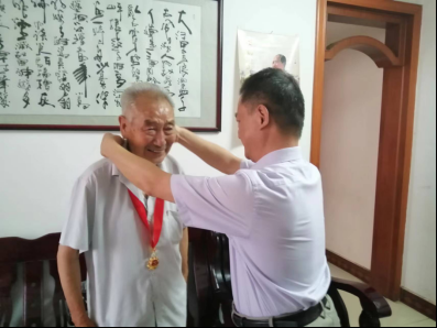 82歲的老黨員王明智拿到紀(jì)念章的那一刻,一遍又一遍地?fù)崦o(jì)念章,臉上的皺紋也掩不住心中的欣喜和激動(dòng)“感謝黨和國(guó)家還記得我們這些老同志,我還時(shí)時(shí)刻刻關(guān)心關(guān)注著全縣經(jīng)濟(jì)社會(huì)發(fā)展,只是老了,幫不上忙了……”“老同志可別這么講,你們是歷史的參與者、親歷者、見證者,是黨和國(guó)家的寶貴財(cái)富,房縣教育事業(yè)的發(fā)展和進(jìn)步離不開您的辛勤付出和無私奉獻(xiàn),希望您積極發(fā)揮自身經(jīng)驗(yàn)優(yōu)勢(shì),不忘初心、永葆本色,繼續(xù)支持我們房縣的工作,為房縣加快建設(shè)‘區(qū)域中心城,綠色示范縣’,貢獻(xiàn)智慧和力量,以實(shí)際行動(dòng)迎接黨的二十大勝利召開。