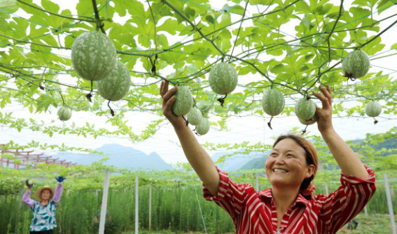湖北日?qǐng)?bào)訊 通訊員 張啟龍 報(bào)道:7月16日,房縣軍店鎮(zhèn)中村中藥材基地,農(nóng)民在觀察吊瓜長(zhǎng)勢(shì)。近年來,房縣憑借中科院院士領(lǐng)銜、農(nóng)醫(yī)聯(lián)手、中醫(yī)藥產(chǎn)業(yè)與高校“產(chǎn)學(xué)研”對(duì)接平臺(tái),通過神農(nóng)本草、三鑫生物、陵州藥業(yè)等生物醫(yī)藥公司和鄉(xiāng)村藥材專業(yè)合作社的資金、技術(shù)優(yōu)勢(shì),輻射帶動(dòng)道地中藥材育苗育種、精細(xì)加工、中藥材檢測(cè)產(chǎn)業(yè),實(shí)現(xiàn)中藥村種植、加工生產(chǎn)、成品藥銷售效益倍增。目前,當(dāng)?shù)刂兴幉姆N植面積超過50萬畝,房陵牌丹參、房陵本草牌柴胡、房陵本草牌白及、武當(dāng)牌克林新、百草傳奇獲得湖北名牌產(chǎn)品;房陵本草及圖、武當(dāng)及圖獲得湖北省著名商標(biāo);房縣虎杖、北柴胡、白芨、絞股藍(lán)通過國(guó)家地理標(biāo)志產(chǎn)品認(rèn)證,精深加工的北柴胡、中藥材制成片劑、膠囊等產(chǎn)品遠(yuǎn)銷日本、韓國(guó)、越南等“一帶一路”17個(gè)國(guó)家和地區(qū),年均實(shí)現(xiàn)產(chǎn)值20億元,帶動(dòng)10萬村民增收致富。