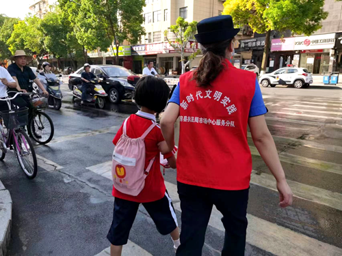 “同志,前面是紅燈,請稍等一下,綠燈的時候再走”周五早上七點,在交通繁忙的西河橋頭十字路口,城管執法局黨組書記、局長全權作為文明交通勸導員,正揮舞著小紅旗協助群眾安全通過斑馬線。在局班子成員的帶領下,每月開展交通勸導志愿服務已經成為大家的必修課。