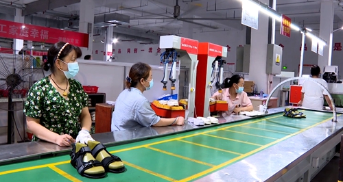湖北雄耀體育用品有限公司位于房縣紡織產(chǎn)業(yè)園內(nèi),是一家從事運動休閑和戶外休閑鞋類設(shè)計、開發(fā)、生產(chǎn)、銷售于一體的企業(yè)。8月17日,記者在該企業(yè)的生產(chǎn)車間看到,各道工序生產(chǎn)線快速運轉(zhuǎn),工人們規(guī)范佩戴口罩,熟練地操作著機(jī)器,開足馬力趕訂單、忙生產(chǎn)、搶進(jìn)度。