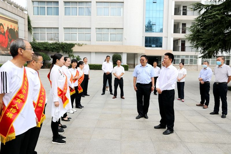 房縣新聞網訊 記者劉臣 陳銳 報道:在第三十八個教師節到來之際,9月8日,縣委書記紀道清帶隊到曉陽小學、實驗中學、房縣一中等學校,走訪慰問一線教師代表,感謝他們為房縣教育事業發展作出的積極貢獻,代表縣四大家和全縣人民向廣大教育工作者致以節日的問候和美好祝福。