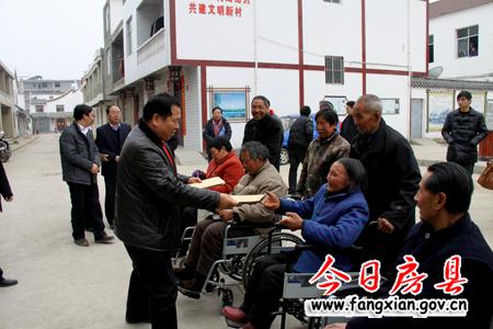 圖為省政協委員趙承偉向古城村部分殘疾人送上慰問金