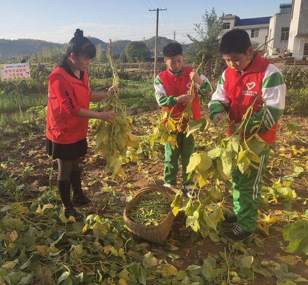 “今天我第一次拔毛豆,挺吃力的,手都起泡了,雖然辛苦,但很有成就感,同時也領悟到了“誰知盤中餐、粒粒皆辛苦”的真正含義?!笔Y心怡同學說。