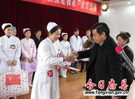 比賽現(xiàn)場,姚峰對工作在醫(yī)療戰(zhàn)線的女同胞們送上了祝福,并指出,作為醫(yī)務工作者要發(fā)揚“自尊、自信、自立、自強”的精神,全心全意地為患者服務,抓好新一輪的醫(yī)療改革工作,為我縣的醫(yī)療衛(wèi)生事業(yè)做出更多的貢獻。