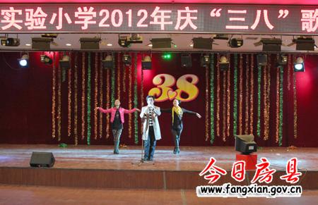 縣實驗小學二年級組的女教師們在表演合唱