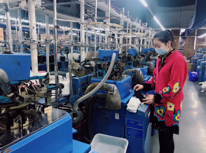 瑞泰針織幫扶車間現(xiàn)有自動(dòng)化生產(chǎn)線4條、全電腦織襪機(jī)120臺(tái)、縫口機(jī)12臺(tái)、鎖邊機(jī)13臺(tái)、大型定型機(jī)1臺(tái),日生產(chǎn)襪子100萬雙,年產(chǎn)值約4000萬元,納稅近400萬元。產(chǎn)品遠(yuǎn)銷俄羅斯、希臘、波蘭等地,每年出口900多萬雙,目前已與杭州、諸暨的2個(gè)電商團(tuán)隊(duì)合作,在阿里巴巴、拼多多等多家知名購物網(wǎng)站上線。