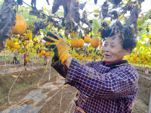今日房縣網(wǎng)訊 記者 李碩 何賽男 報(bào)道:眼下,房縣軍店鎮(zhèn)中村村的吊瓜種植基地迎來了豐收。一個(gè)個(gè)金燦燦的吊瓜,一張張喜悅的笑臉,構(gòu)成了一幅亮麗的豐收畫卷。