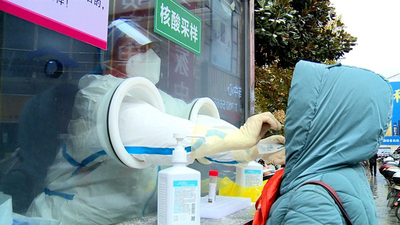 上午9點40分,室外溫度零下1度,雪花漫天飛舞。采樣崗?fù)さ闹凳蒯t(yī)生許明堅,已堅守崗位5天了。她的防護面罩上,霧氣凝結(jié)成一滴滴水珠。她一絲不茍,一遍遍不停重復(fù)著動作,反復(fù)進行著試管貼簽、消毒洗手、準備試劑管、采集咽拭子、現(xiàn)場采樣……