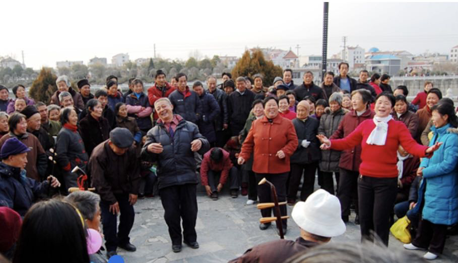 ▲房縣村民演唱《詩經(jīng)》民歌,自娛自樂