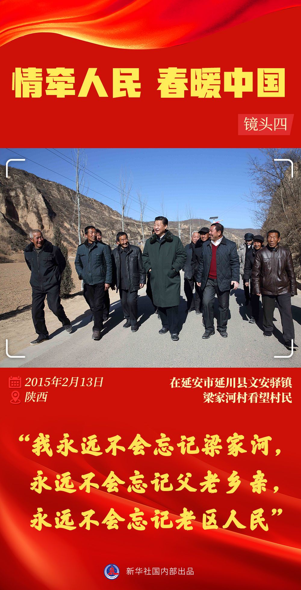立春后的三秦大地,陽光明媚,暖意融融。2015年2月13日至16日,習(xí)近平總書記來到延安、銅川、西安等地,深入鄉(xiāng)村、學(xué)校、社區(qū)、科研院所、革命根據(jù)地紀(jì)念場館調(diào)研考察,并在延安主持召開陜甘寧革命老區(qū)脫貧致富座談會,給廣大干部群眾送去黨中央的親切關(guān)懷。