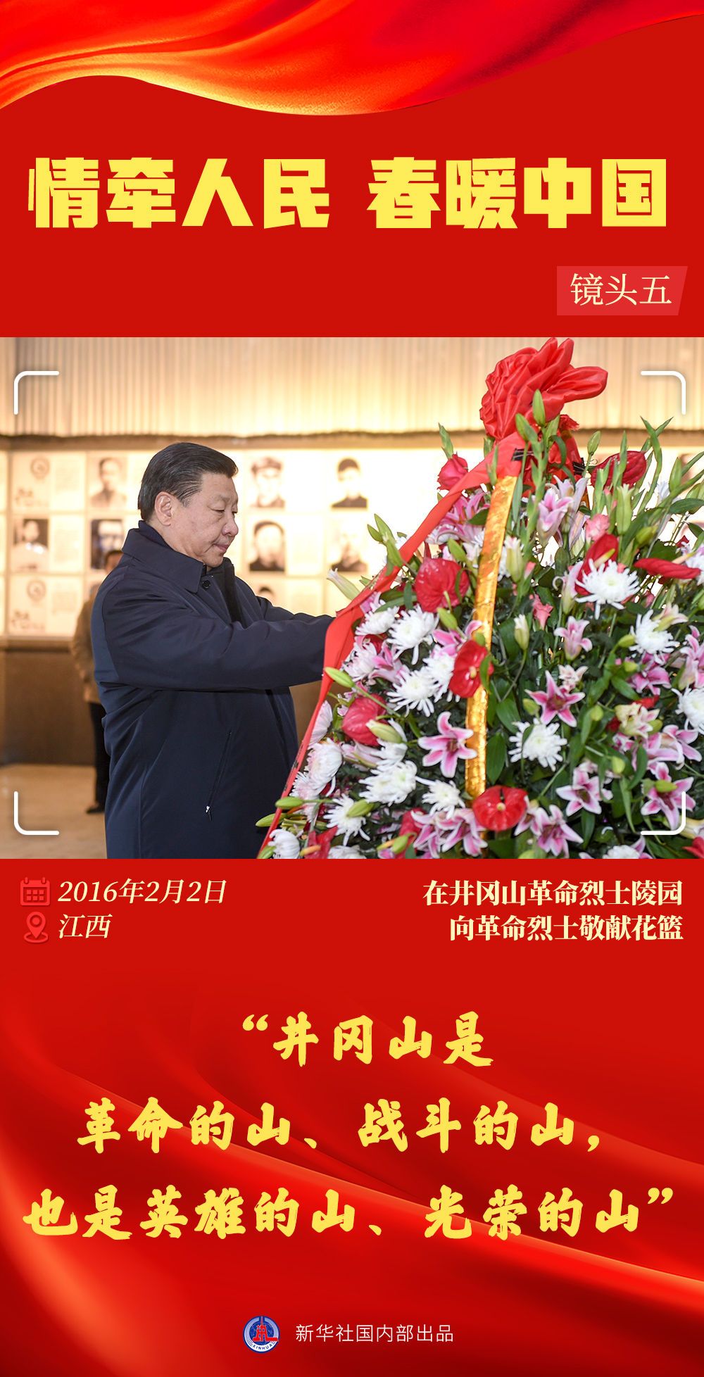 2016年2月1日至3日,習(xí)近平總書記來到吉安、井岡山、南昌等地,深入鄉(xiāng)村、企業(yè)、學(xué)校、社區(qū)、革命根據(jù)地紀(jì)念場館調(diào)研考察,就貫徹落實黨的十八屆五中全會精神和中央經(jīng)濟(jì)工作會議、中央扶貧開發(fā)工作會議、中央城市工作會議精神進(jìn)行指導(dǎo),給廣大干部群眾送去黨中央的新春祝福和親切關(guān)懷。