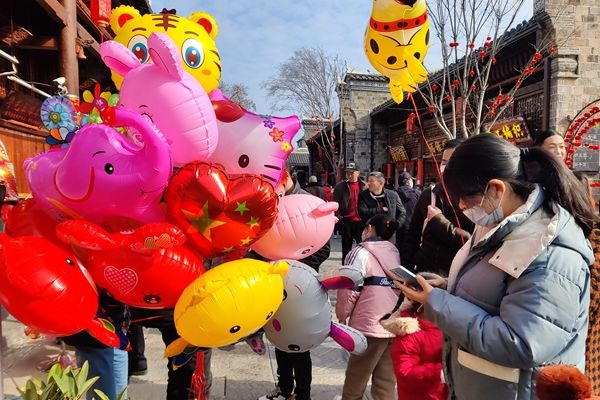 白天,伴隨著晴朗的好天氣,西關印象游人如潮。周禮迎賓、采薇、關雎等古風演藝搭配舞龍、舞獅、劃旱船、訓毛驢、戲蚌殼等房縣傳統(tǒng)民俗活動輪番上演,那些屬于兒時的春節(jié)“文藝經(jīng)典”喚起了游客的記憶;品種繁多的特色美食、琳瑯滿目的旅游紀念品、唯美的古風演藝、令人拍手叫絕的特技表演,都讓游客流連忘返。房陵烤餅、卷卷、烤面筋、烤豆皮等特色小吃前,游客排起了長龍;房小陵、詩小雅也成為今年春節(jié)的“小紅人”,與他們合影成為游客新年游西關印象必做之事。